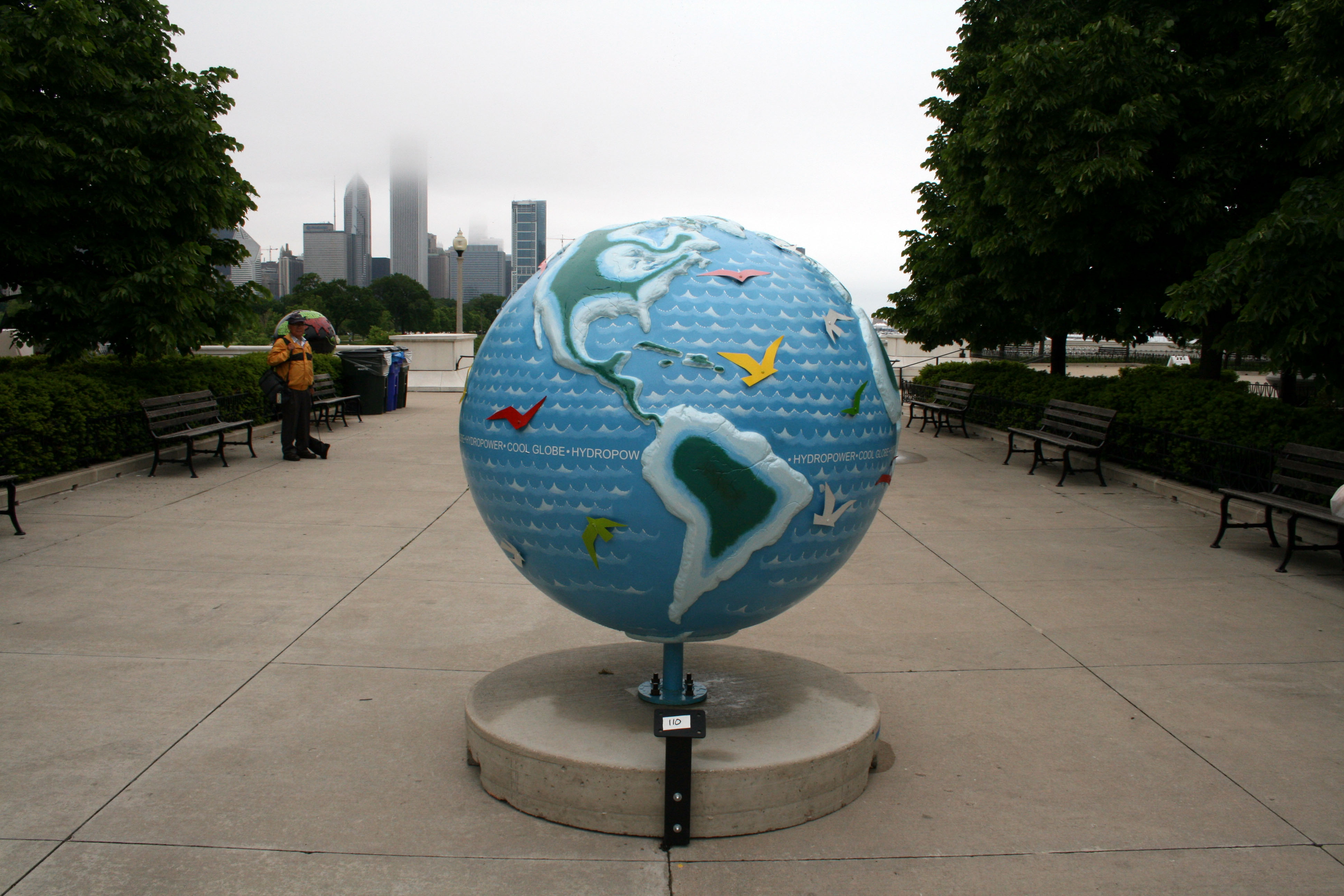 The exhibit is featuring 120 sculpted globes, each five feet in diameter, displayed along Chicago’s lakefront from the Field Museum north to Navy Pier, opening June 1st through September, 2007.
